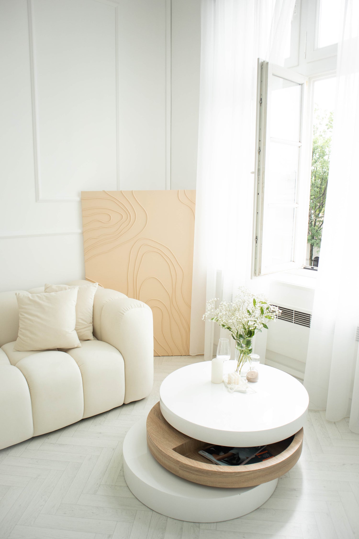 Oferujemy przytulną salę z doskonałym naturalnym oświetleniem, idealną do kreatywnych sesji zdjęciowych w minimalistycznym stylu. Znajdziesz tu różnorodne tła, stylową strefę z sofą i dekoracjami, a także szarą betonową ścianę – doskonały akcent dla nowoczesnych ujęć.